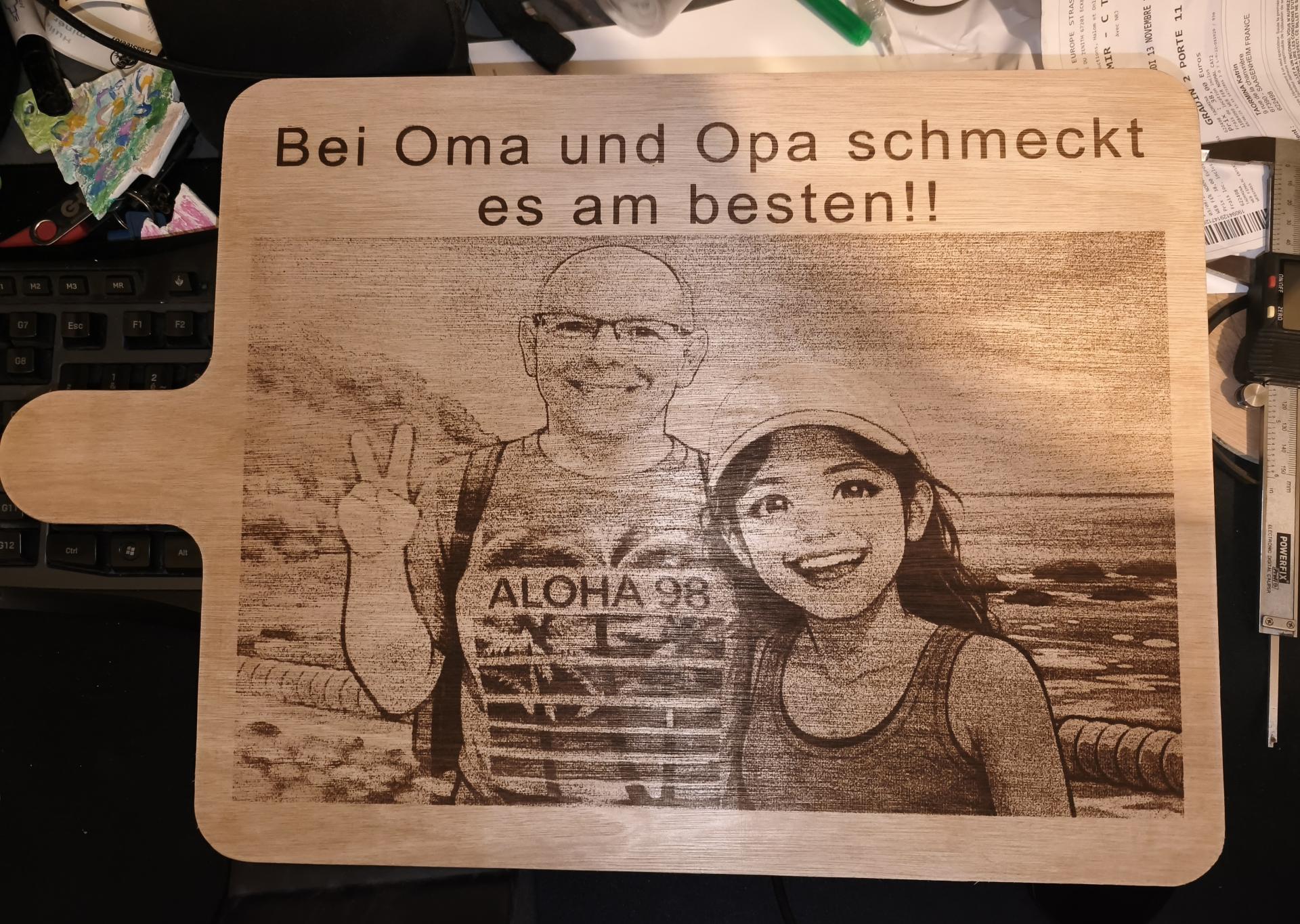 Planchette en bois personnalisée par gravure laser de haute précision, idéale pour un cadeau unique ou un usage décoratif et culinaire. Finition soignée, durable et élégante.